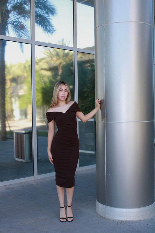 Vestido, color, chocolate, Midi Off Shoulder#11465