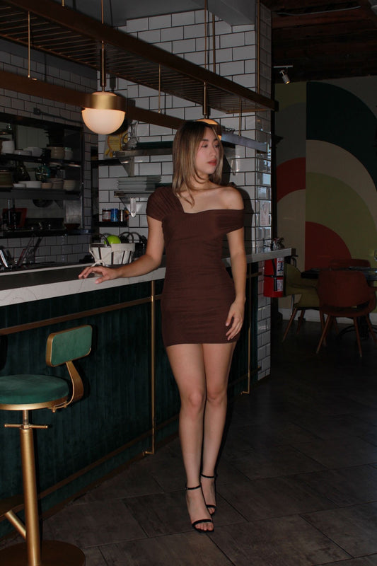 Vestido, corto, café de licra #11691