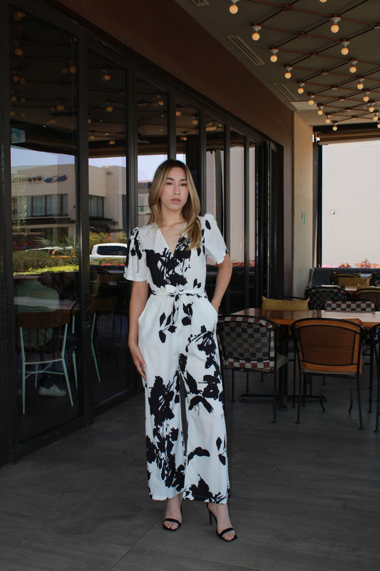 Jumpsuit blanco c flores negras #11303