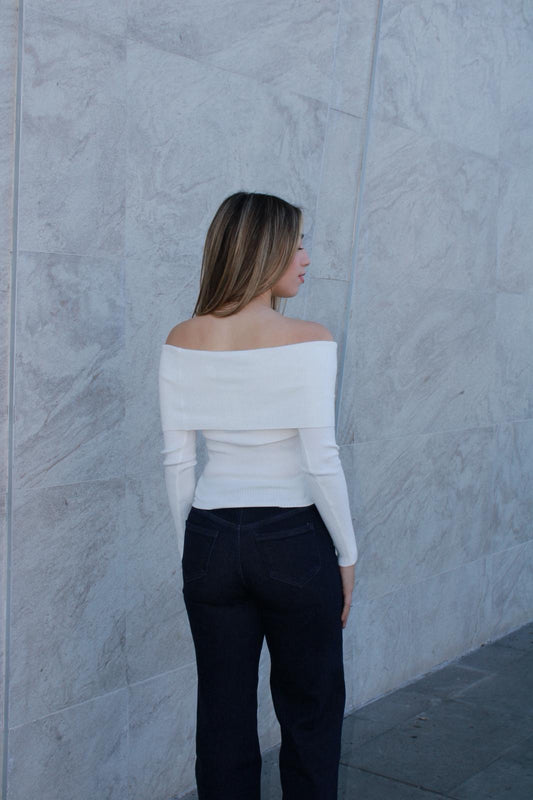 Blusa, suéter of Shoulder, con botones blanca #11577