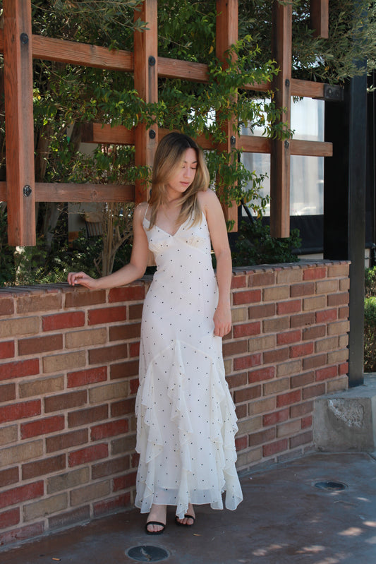 Vestido blanco c polka dots y Olanes #11293