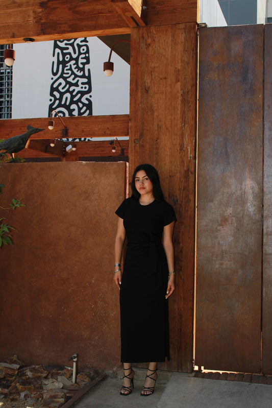 Vestid negro corte camiseta c nudo midi #11262