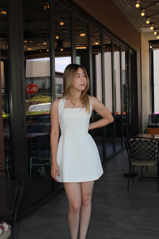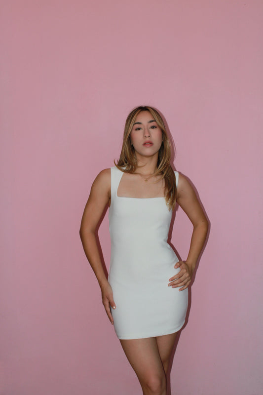 Vestido blanco corto escote cuadrado #11121