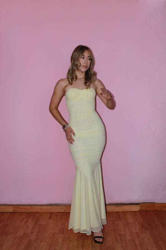 Vestido amarillo pastel strapless mesh #11341
