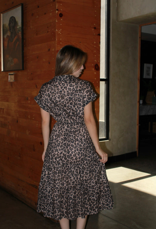 Vestido animal print midi c elástico #11313