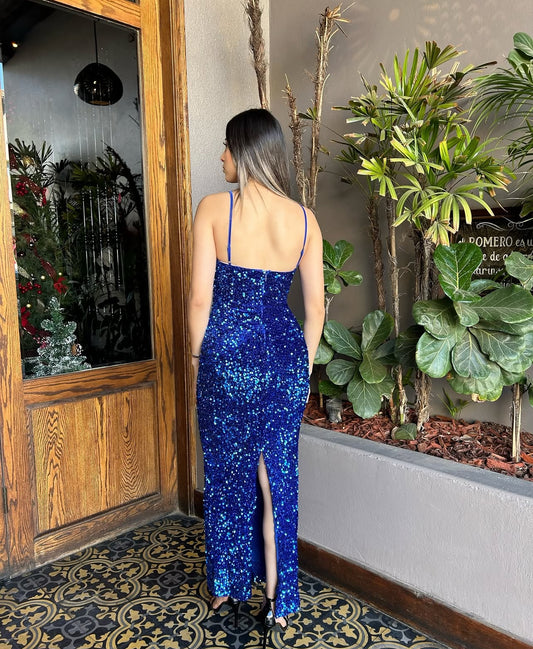 Vestido largo de lentejuela, color dorado, cobre #11632