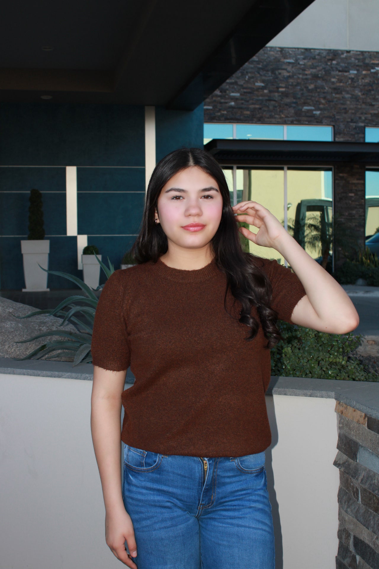 Blusa manga, corta de suéter café