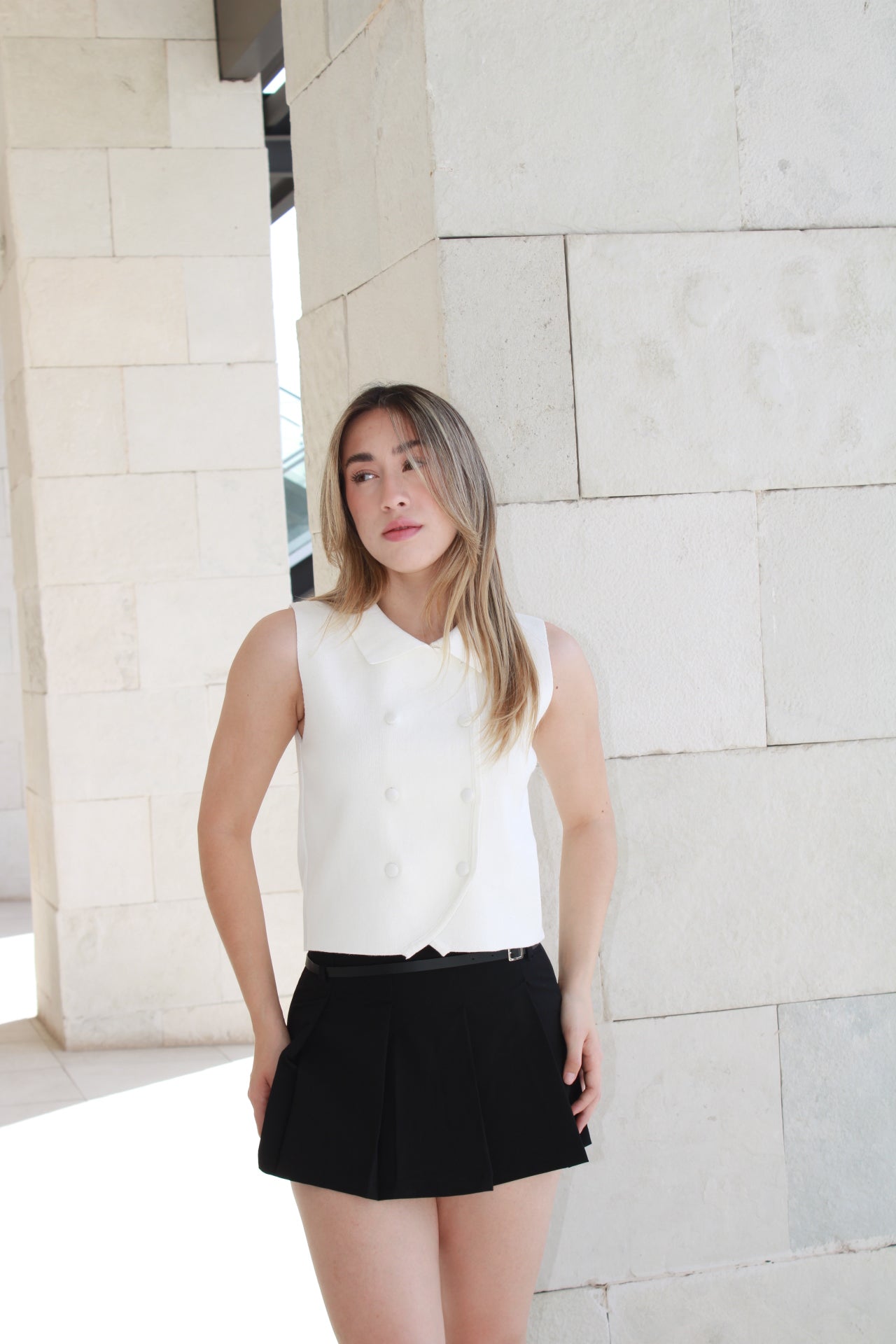 Chaleco cuello polo blanco con botones #10997