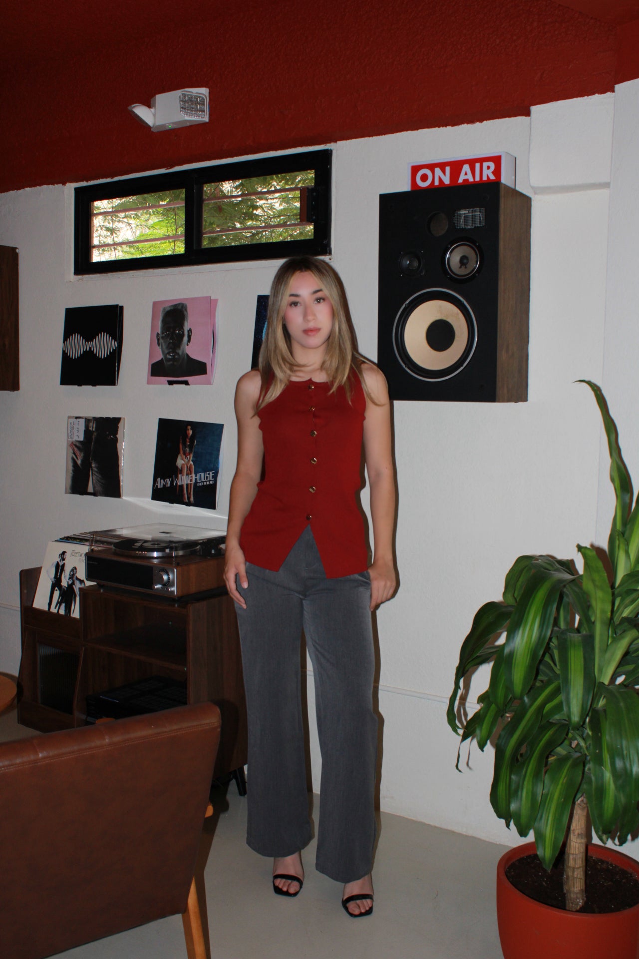 Chaleco guinda con botones dorados