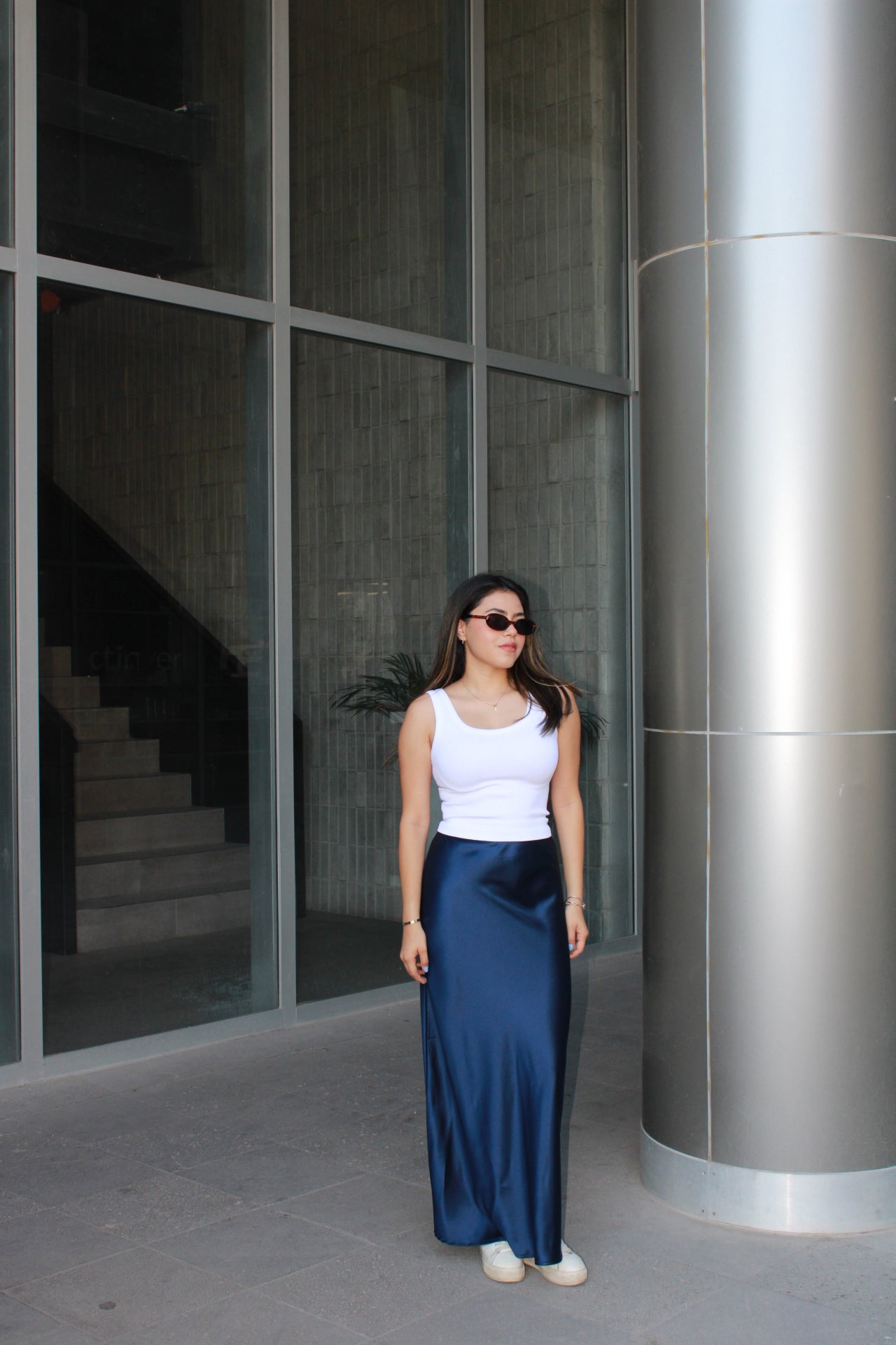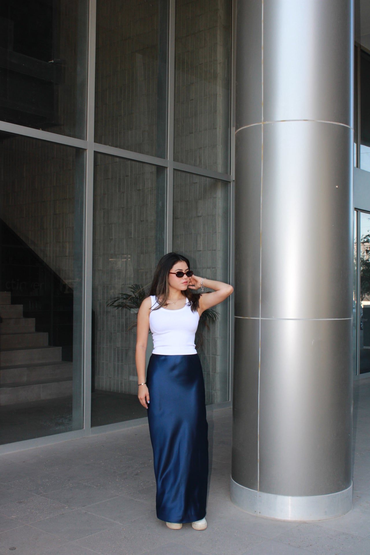 Faldas satinadas, azul marino