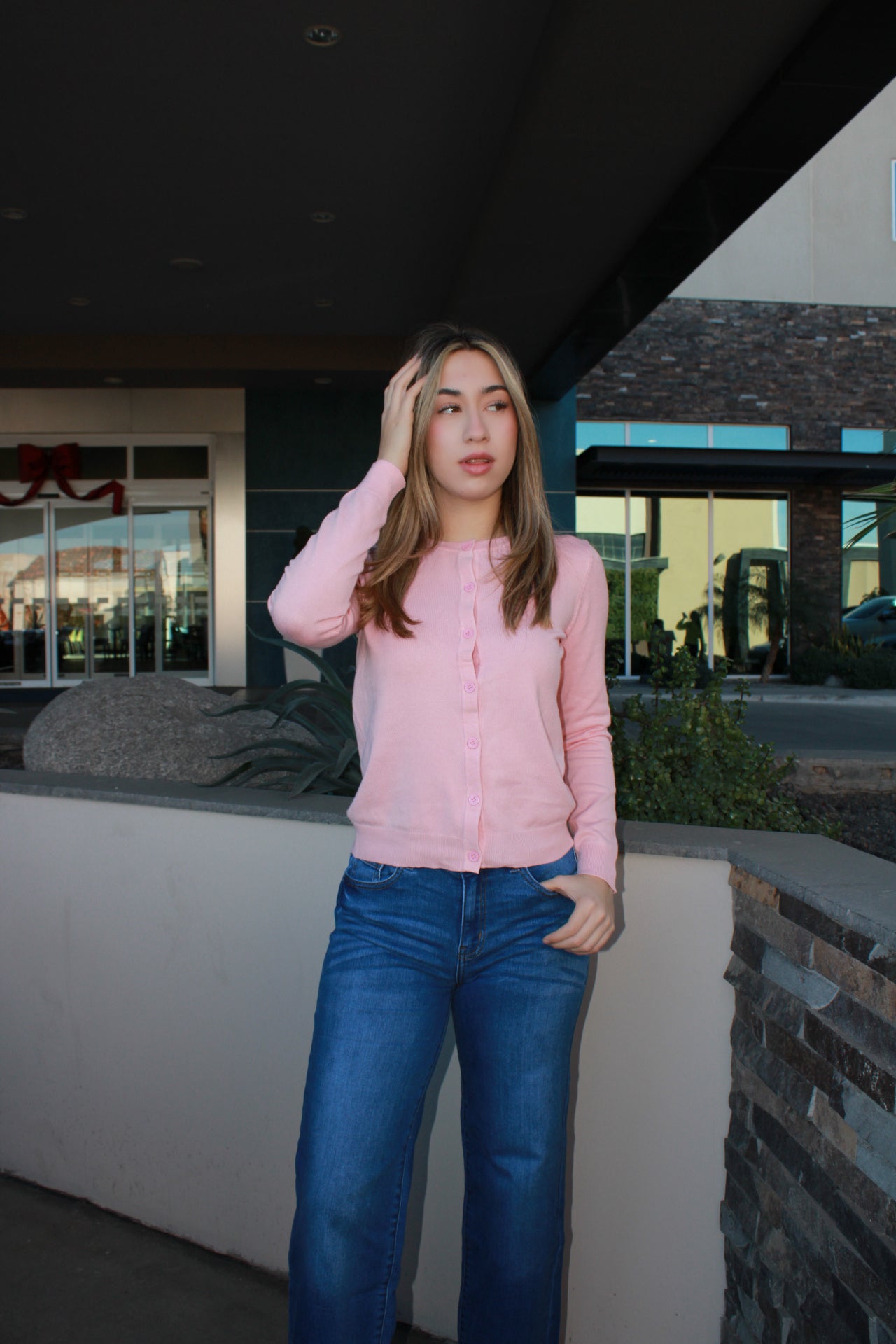 Suéter de botones rosa pastel #11682