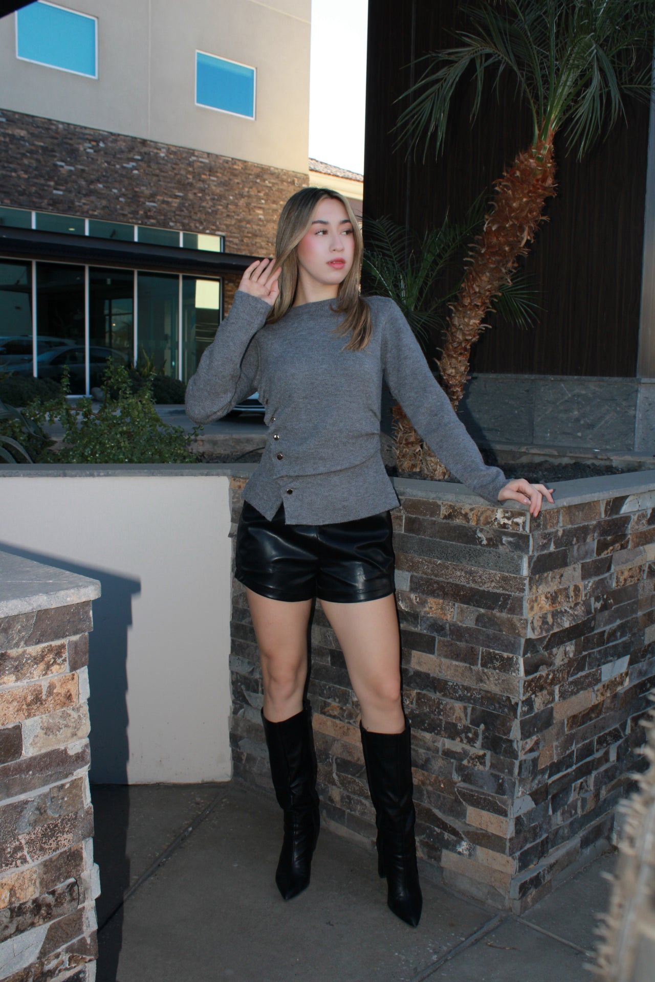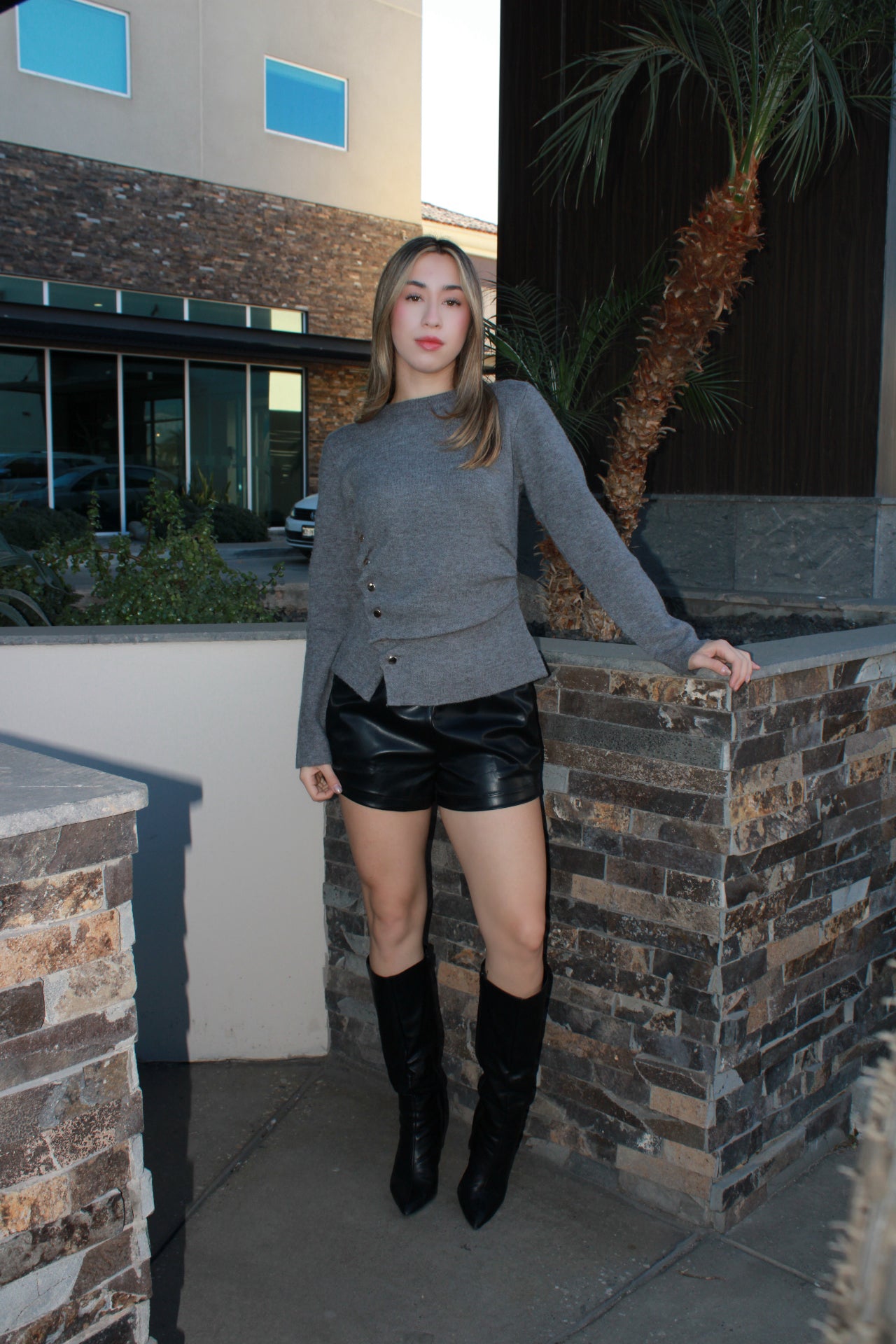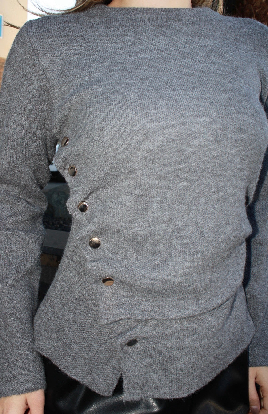 Suéter gris, con botones de un lado #11671