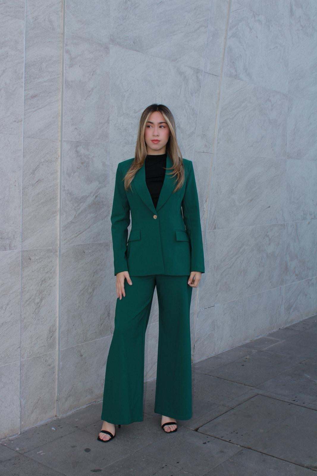Traje verde oscuro de pantalón y saco #11586