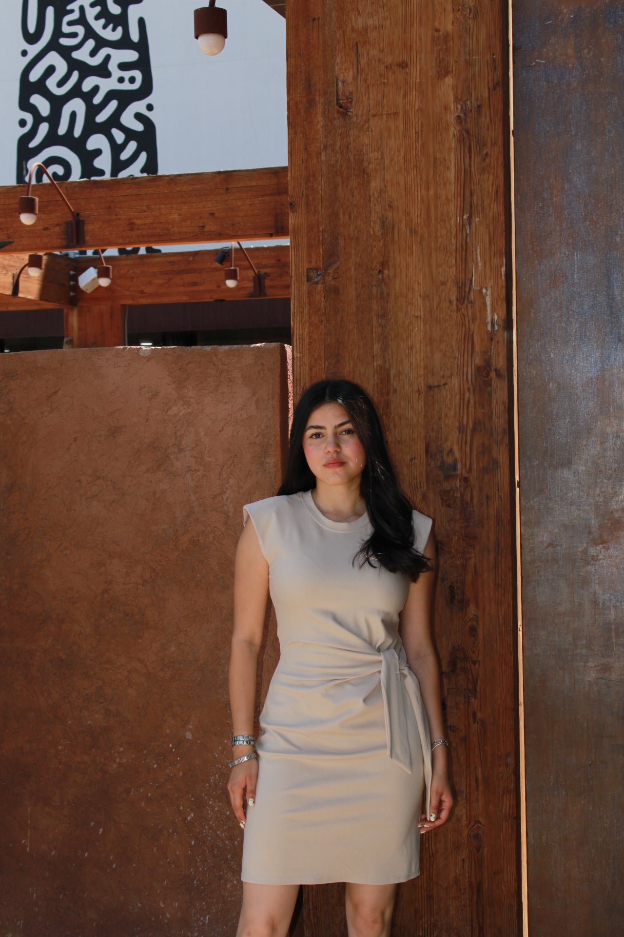 Vestido beige c nudo corto #11263