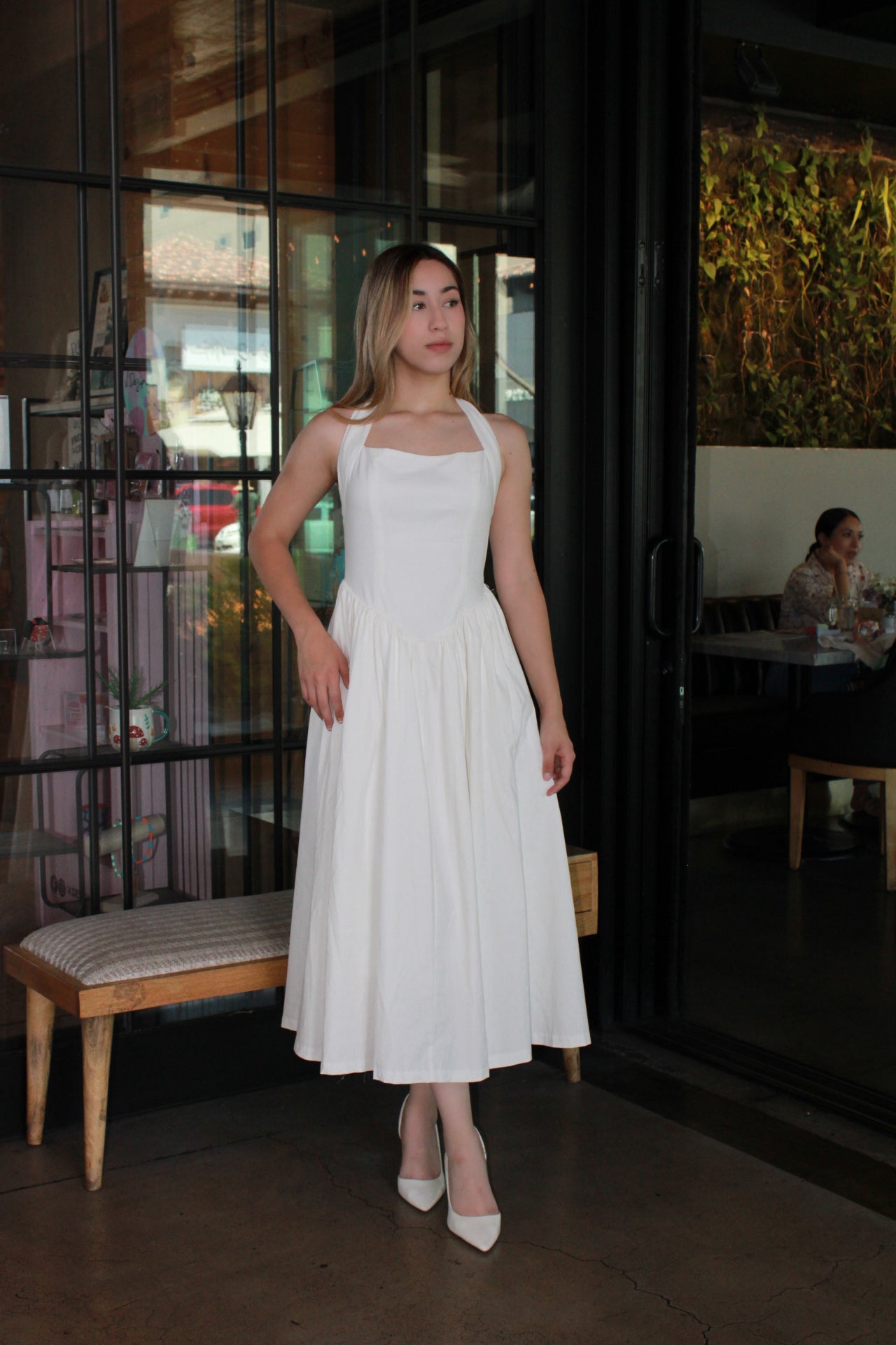 Vestido Blanco Largo corte globo halter #11322