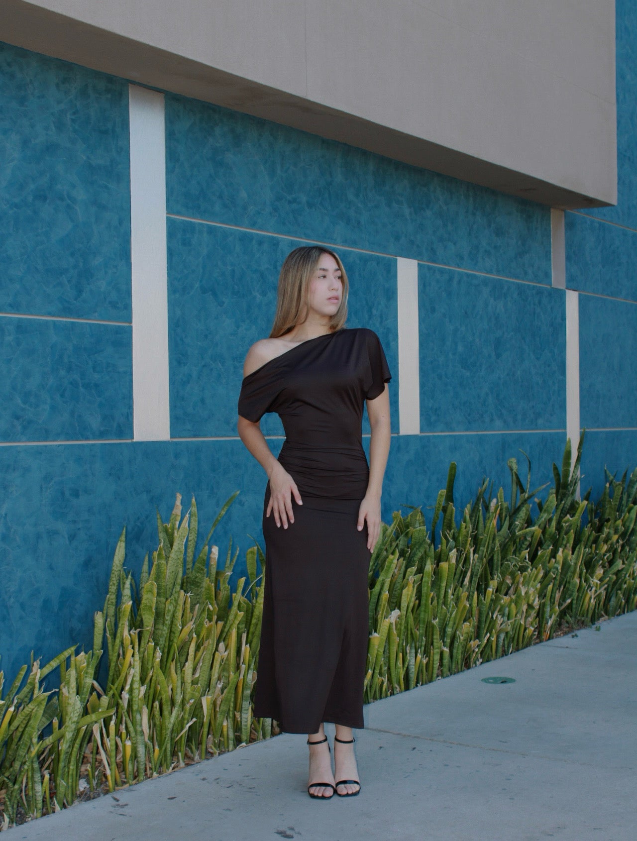 Vestido café Off Shoulder