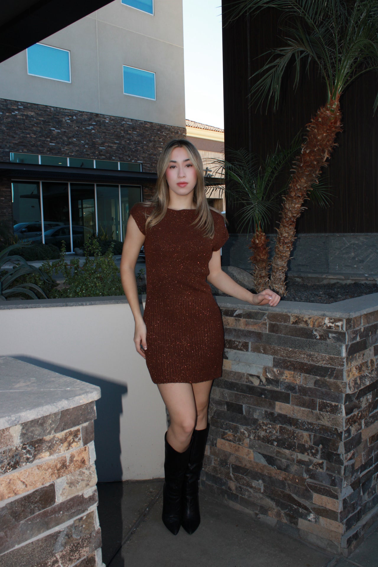 Vestido, café de suéter corto con brillos #11667