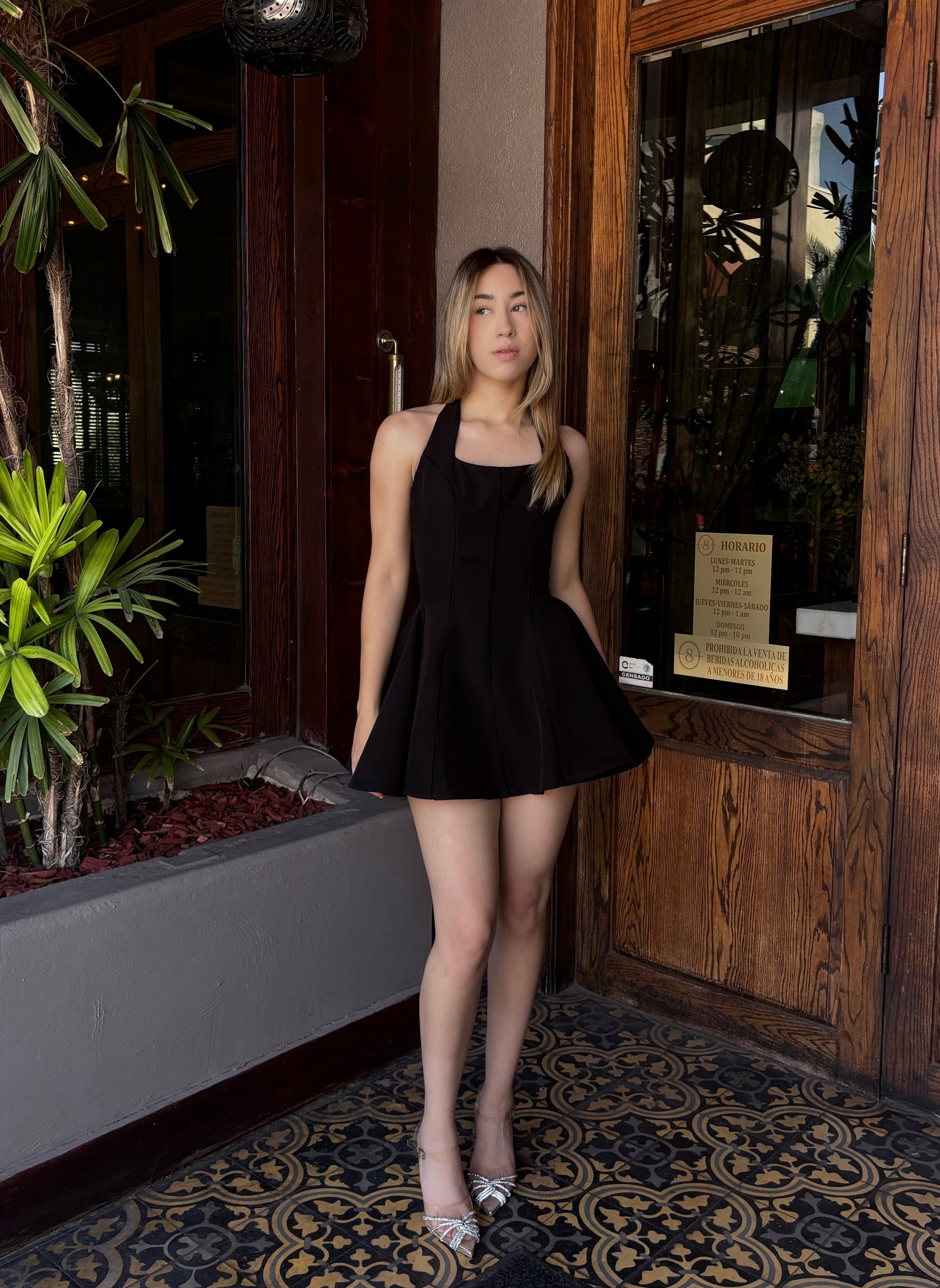 Vestido halter negro c moño atrás #11307